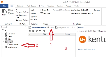 3. Content list area, there you normally see the IE, Task, Search and Assigned to me list panels.
