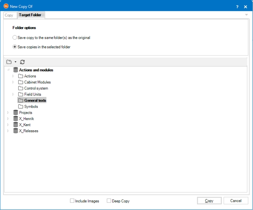 If no target folder is selected, the new IE is created in the same folder or same folders where the original IE is.