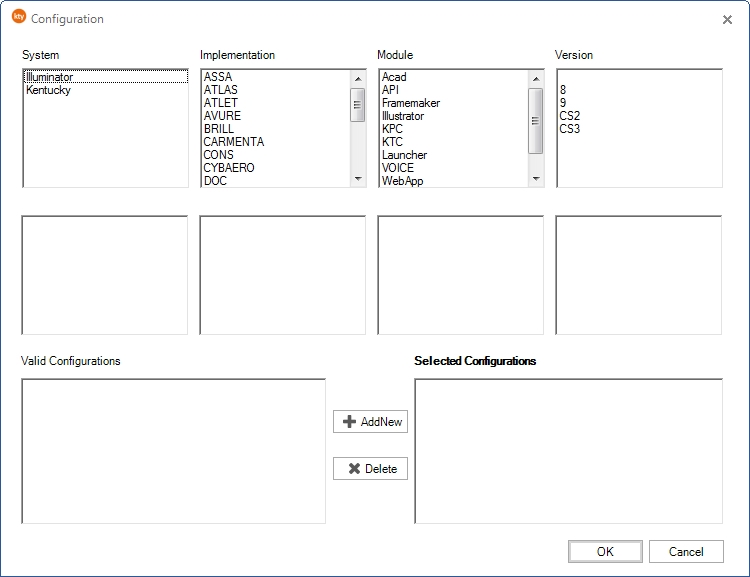 Select an element in the left treeView and then press the "Configuration" button in the ribbon menu at the top. When you do, the following window comes up.