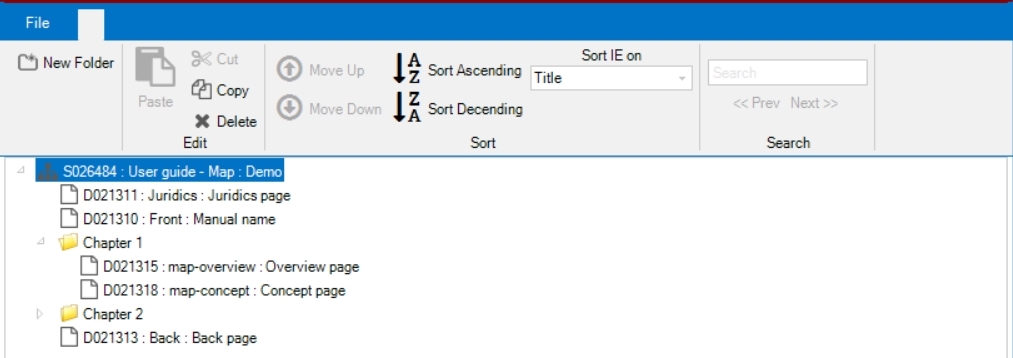 The MAP Editor uses another way of planning a document. Instead of adding manually each fragment as you do with the ieref element in a map-book, you pick and release the fragments visually to the map editor with the mouse. The same when you re-arrange chapters (which in the MAP Editor are called folders), it is also done visually in one place.