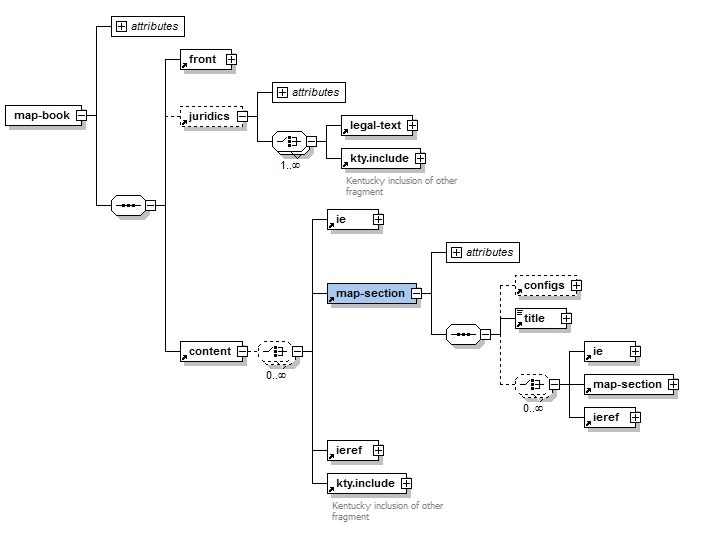 The map-section element is used to group one or more either ie or more map-sections. One map-section is a chapter in the final document (or sub-chapter).