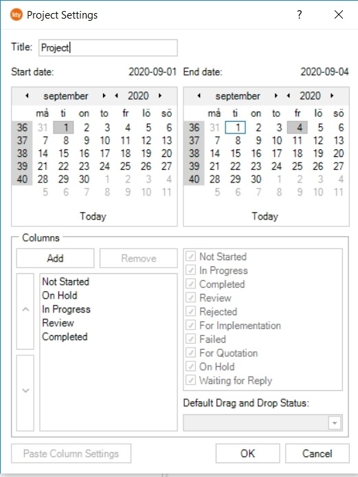 hintTo use previously defined board column settings on a new project, right-click on the project with the settings you wish to copy and select . Then right-click on the folder with the new tasks and select .