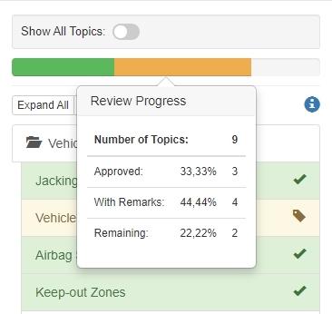 • Added a progress bar displayed at the top of the review map tree indicating the progress of the current review.