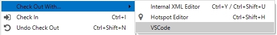 Check out with VSCode: XML documents can now be checked out to Visual Studio Code, if it is installed on your computer.